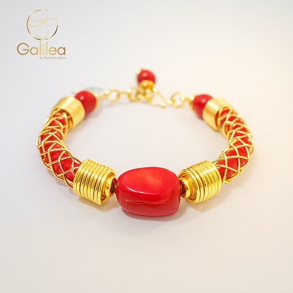 Delicado y exquisito brazalete elaborado con coral natural y cristales rondele.