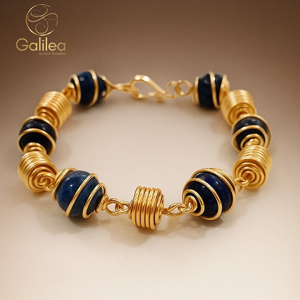 Delicado y exquisita pulsera elaborada con piedra natural de jaspe azul